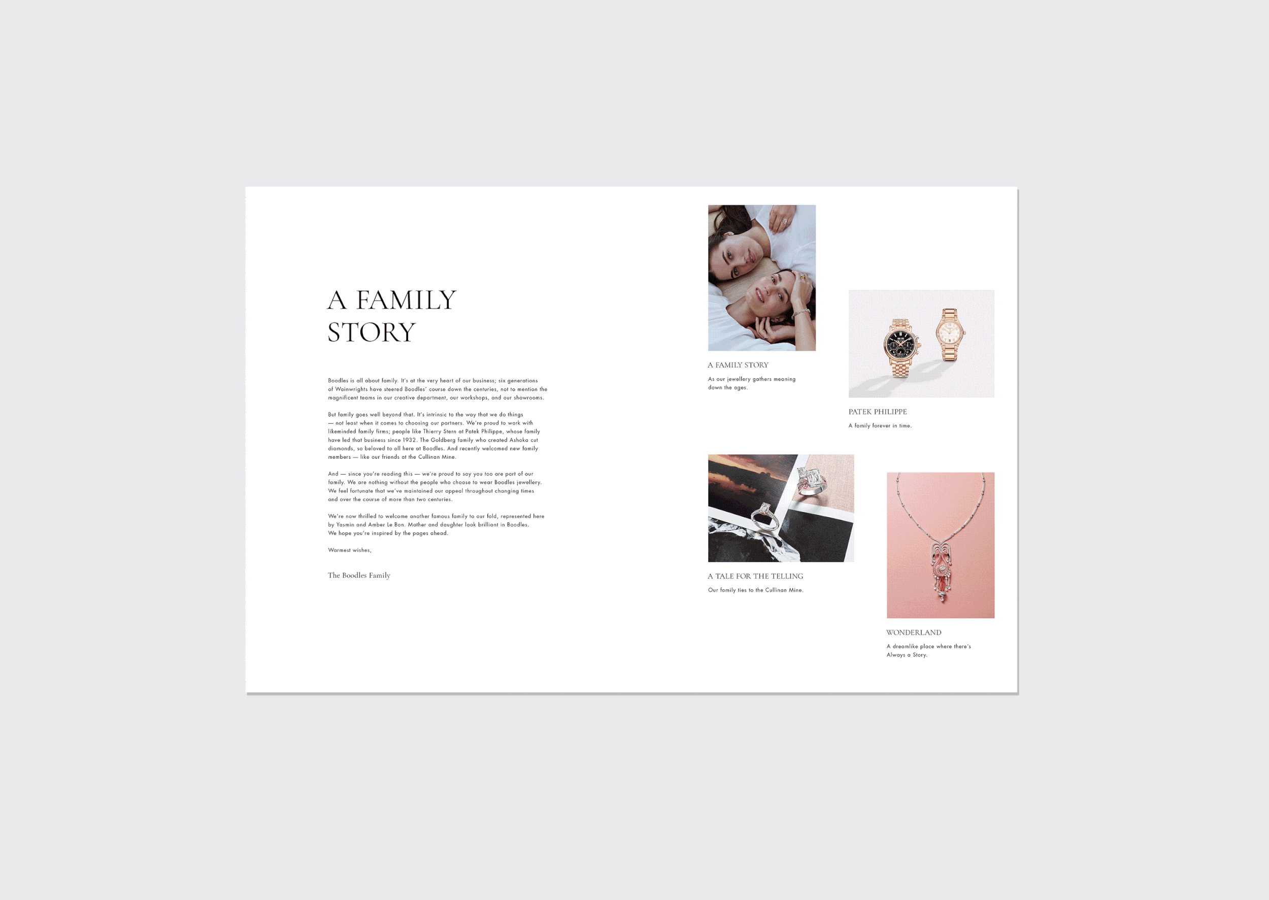 A Family Story advertising campaign staring mother and daughter Yasmin and Amber Le Bon. Colour photos photographed by Billy Ballard. Black and white and still life photos photographed by Willow Williams. Styled by Naomi Miller. Set design by Johanne Mills. DOP Louis Mackay